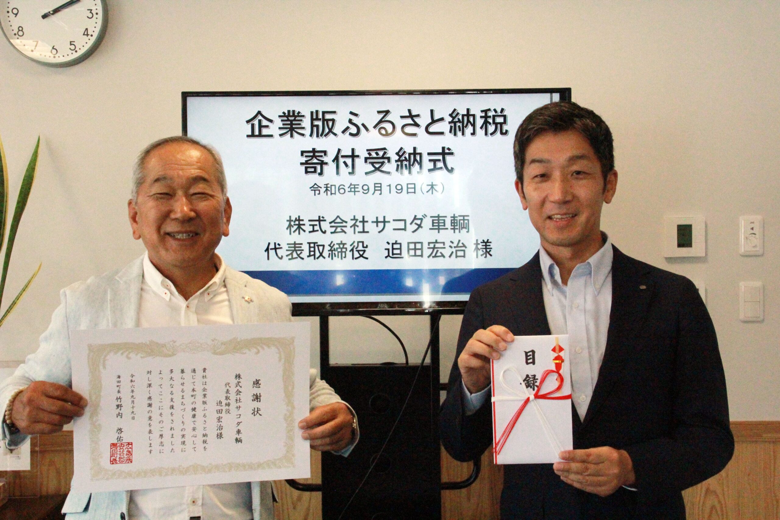 海田町役場へ353,500円を寄付